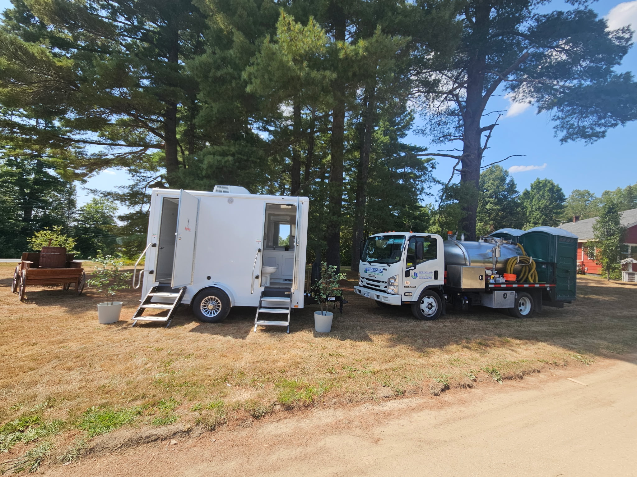 Let New England Event Rentals make your next event or project comfortable, clean, and hassle-free. Our bathroom trailer rentals deliver luxury, reliability, and exceptional value — all backed by our friendly Maine-based team.